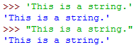 Створення рядків, функція print() | Будь-яка послідовність символів, записана в лапках, в Python вважається рядком, при цьому рядки можуть бути взяті як в одинарні, так і в подвійні лапки. | |